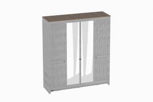 Шкаф 4 дверный Валенсия с зеркалом выполнен из ЛДСП в комбинации Дуб натуральный светлый / Персидский жемчуг.