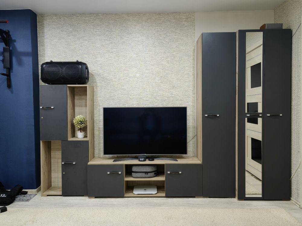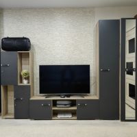 Гостиная состоит из бельевого шкафа, средней секции и платяного шкафа