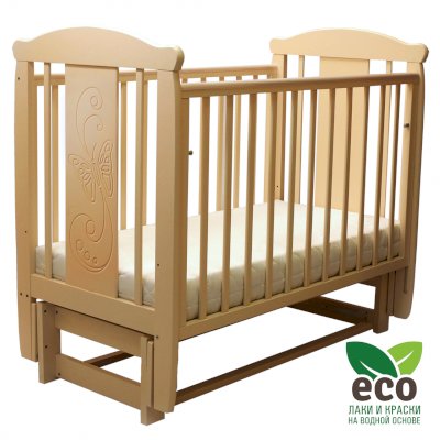 варианты цветовых решений Кроватка "Соня 05" имеет механизм качания продольный маятник. Механизм качания фиксируется. Возможен вариант кровати с ящиком.
