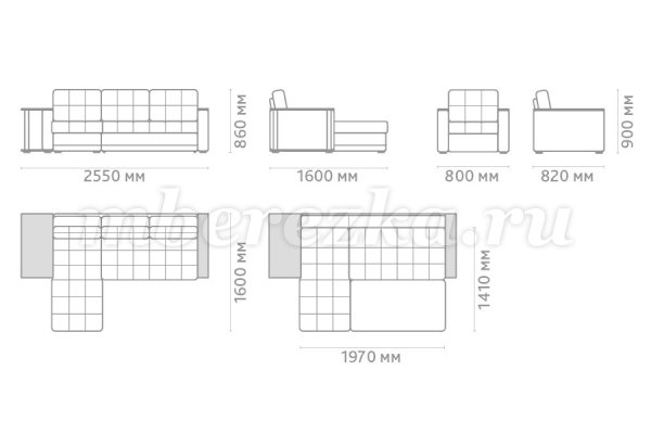 Размер дивана : 2550*1600*860 мм