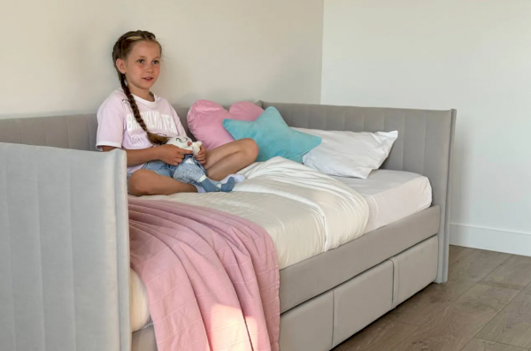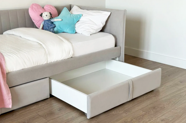 Комфорт вашего сна обеспечивают мягкие элементы изголовья, боковин, корпуса и фасадов ящиков, обитые нежным велюром. Эта уютная обивка не только добавляет эстетическую ценность, но и делает кровать более безопасной, особенно для детей. Кроме того, высококачественный наполнитель из ППУ обеспечивает отличную поддержку и комфорт во время сна.
