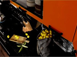 Благодаря дизайнерским цветовым решениям кухню «Контент» можно собрать в разных стилях. Например, домохозяйки предпочитают природную сине-зелёную гамму, а графитовый глянец в тандеме с цитрусовым, рубиновым или оранжевым цветом выбирают люди творческие, кто черпает вдохновение в нестандартных решениях и не боится экспериментировать. Многообразие цветовой гаммы фасадов, абсолютный глянец и супер-матовые покрытия Soft-touch создают визуальный «вау-эффект», который находится на пике популярности. Навесные шкафы со стеклостворками, обрамлёнными чёрной глянцевой рамкой добавляют элегантности и оригинальности. Сочетание простоты и эстетического шика с инновационными технологиями, где каждый модуль используется не только по назначению, но и служит его украшением, делает кухню модной, практичной и функциональной.