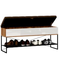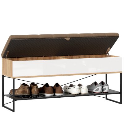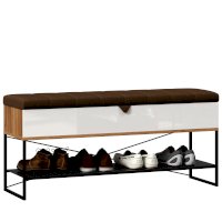 - Скамья установлена на опорный металлический каркас со стационарной металлической полкой для обуви. (полка с перфорацией)