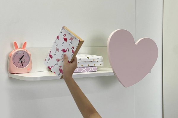 Представляем вам навесную полку "Сердечко" - идеальный аксессуар, который добавит шарм и уют в интерьер детской комнаты. Сочетание ЛДСП белого дерева и изысканного декоративного элемента в виде розового сердечка из МДФ создает неповторимую атмосферу милости и нежности.
