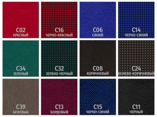 | Цвет | БЕЖЕВЫЙ / БЕЛЫЙ / ГОЛУБОЙ / ЗЕЛЕНЫЙ / КОРИЧНЕВЫЙ / КРАСНЫЙ / ОРАНЖЕВЫЙ / САЛАТОВЫЙ / СЕРЫЙ / СИНИЙ / СИРЕНЕВЫЙ / ЧЕРНЫЙ |