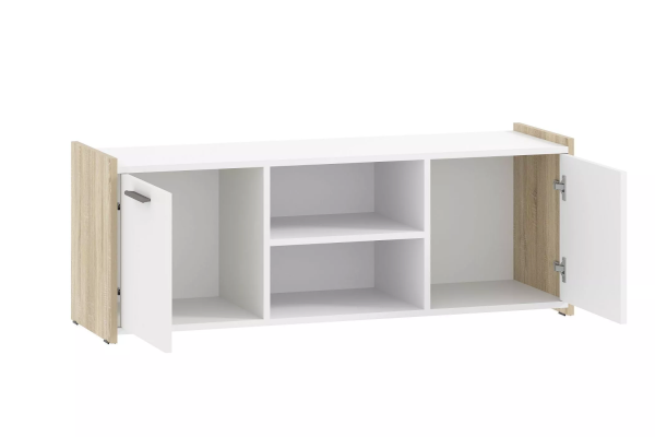Тумба ТВА Симпл выполнена в скандинавском стиле и имеет малые габариты, что делает ее функциональной и стильной. Характерная особенность тумбы - комбинация открытых полок и ящиков. На полках можно разместить предметы декора и книги, а в ящиках за распашными дверями расположить все необходимые мелочи.