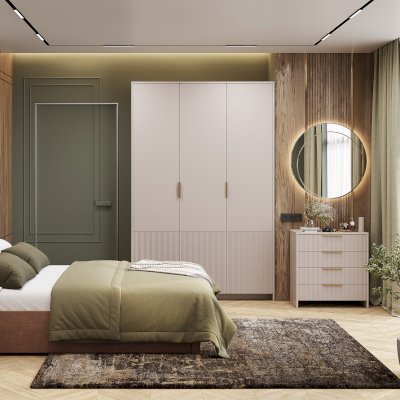 • Стильные ручки в цвете «пыльно-матовое золото».