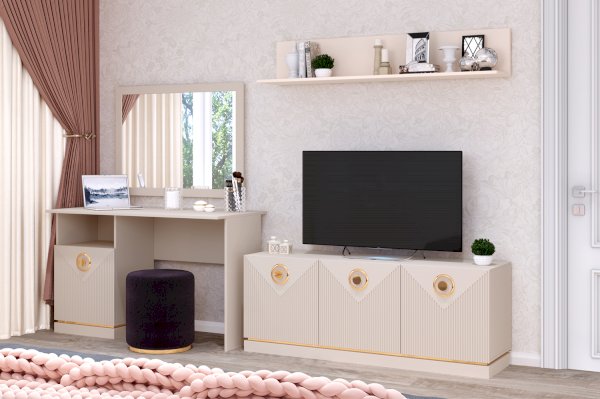 Купить письменный стол в гостиную или спальню - отличное решение. Модуль очень функционален благодаря своей продуманной конструкции. Здесь вам доступны тумба с дверкой и ниша для открытого хранения всевозможных письменных принадлежностей, книг и журналов. Дизайн и наполнение стола позволят использовать его и как туалетный столик в спальне, в таком случае к нему прекрасной подойдёт зеркало Капри.