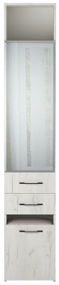 Пенал с выдвижным пуфом на колёсиках "ИТАЛИЯ" П1Я-400 одностворчатый с 4-мя полками и ящиком на роликовых направляющих. Пуф предназначен для хранения вещей, имеет откидную крышку с мягким сиденьем. Обработка зеркала "фацет" по периметру.