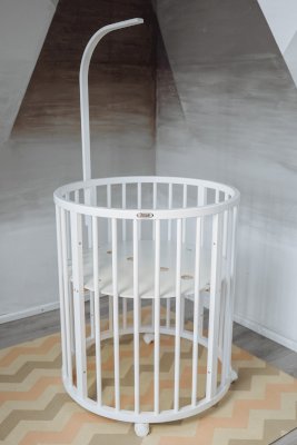 - Уютная колыбелька. Самое первое использование кроватки полностью соответствует ее прямому назначению – спальное место для ребенка. Размеры люльки 78*78 см. Форма люльки - круг. Для колыбельки вы можете приобрести дополнительно круглый матрас 73х73 см.