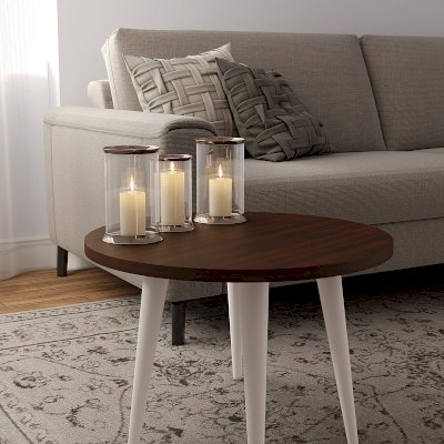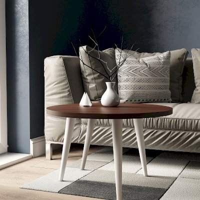 Круглый Норвуд 16 Стол журнальный - легкий по весу и мобильный помощник. Гармоничное сочетание темной столешницы в декоре Орех шоколадный и светлых ножек из массива дерева сделает вашу гостиную еще уютней.
