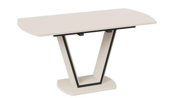 Новинка имеет надежный ручной синхронный механизм раздвижения со вставкой «бабочка», которая укладывается вручную. Это выручает в моменты прихода гостей, которых хочется разместить свободно и с комфортом. Дополнительная вставка со стеклом в цвет столешницы продолжает элегантный образ изделия, делая его целостным и завершенным.