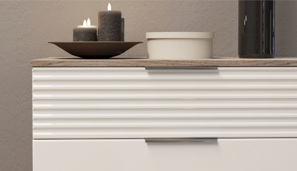 Цвет фасада: Белый глянец High Gloss с фрезерованным рисунком "Волна"