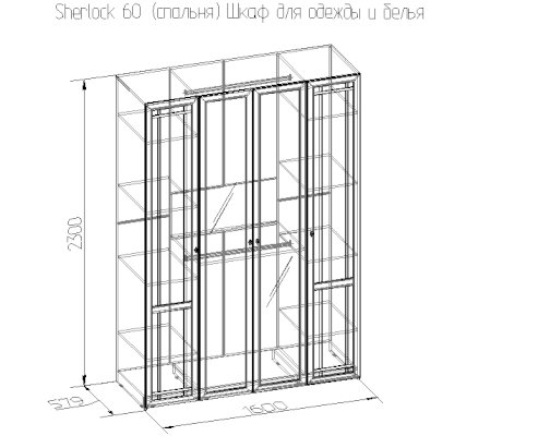 Вместительный четырехдверный Шкаф для одежды и белья с зеркалами во весь рост – уже зарекомендовал себя как отличный, продуманный по внутреннему наполнению и функционалу модуль. Глухие фасады шкафа декорированы раскладкой, центральные зеркальные рамочные фасады без раскладки. Боковые отсеки комплектуются 4 полочками, которые легко закрепить на нужной высоте. Две стационарные штанги в центральной части шкафа также можно перевешивать: для двух штанг предусмотрены три варианта присадки. Это поможет рассортировать длинную и короткую одежду на плечиках. Возможность перевешивать двери позволят создать современную компоновку из нескольких шкафов во всю стену - альтернативу шкафам-купе.