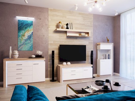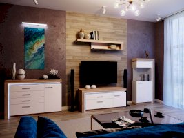 В комплекте можно приобрести светодиодную подсветку, навесную полку или зеркало (только в цвете Дуб сакраменто/ Белый снег глянец).