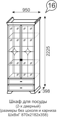 Двухдверный шкаф для посуды Венеция 16 (Ижмебель) - за 43 478 руб. в Кашире. Купите на сайте kashira.onlinemarketmebeli.ru или по телефону 8(800)505-30-63 уже сегодня! Уточнить наличие, комплектацию, актуальную цену можно бесплатно у менеджера ежедневно. Закажите Двухдверный шкаф для посуды Венеция 16 (Ижмебель) до конца акции! Доступна покупка в кредит, рассрочку. Доставим со склада или на заказ.