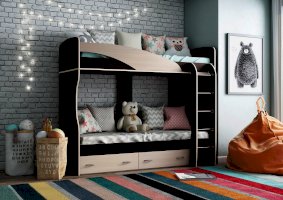 • Нижнее спальное место дополнено двумя выдвижными ящиками на роликовых направляющих