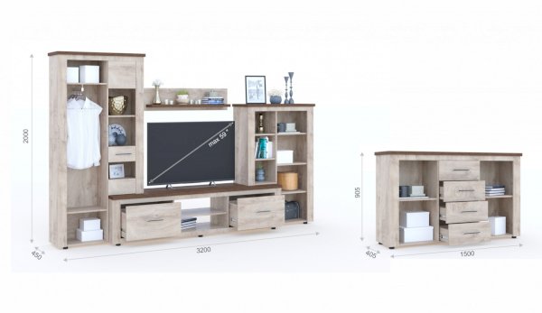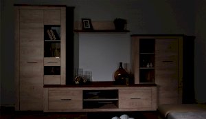 Стенка Мэдисон - это готовое решение для гостиной в современном европейском дизайне. Покрытие из ЭКОшпона повторяет фактуру и рисунок натурального дерева, устойчиво к износу. Крышки стенки, полки и ниша под телевизор выполнены из утолщенной плиты с мягкими безопасными краями. Мебель выполнена из экологически безопасных материалов.