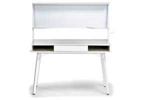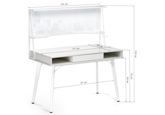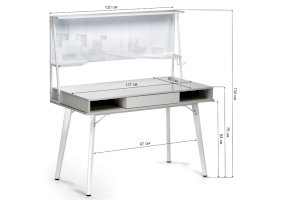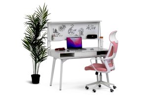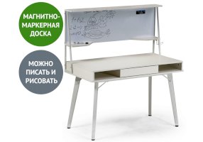 Стол оснащен магнитно-маркерной доской, двумя полками и крючком для наушников.