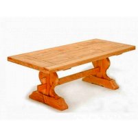 Большой стол с красивой столешницей в рамочном обрамлении. Прекрасное решение загородного дома, хозяева которого любят принимать гостей или наслаждаться просторной, основательной мебелью. Прочная, надежная конструкция на каждый день. Столешница с красивым резным подстольем очень удобна и устойчива.