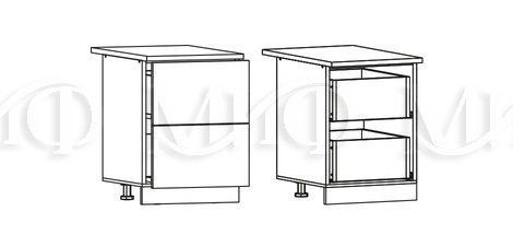 Глубина нижних шкафов без учета столешницы: 444 мм, с учетом столешницы 600 мм