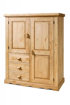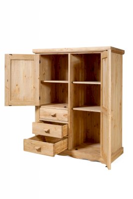 За дверкой слева полка, за дверкой справа 2 полки, 3 выдвижных ящика.