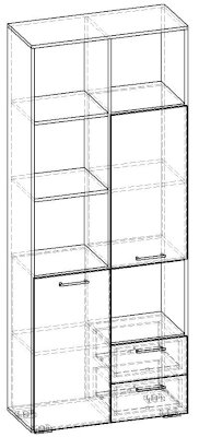 Применение задней стенки из ЛДСП (в ячейках с ящиками и фасадами) позволяет использовать данный стеллаж для зонирования пространства (чтобы предотвратить опрокидывание, необходимо обеспечить крепление стеллажа к стене).