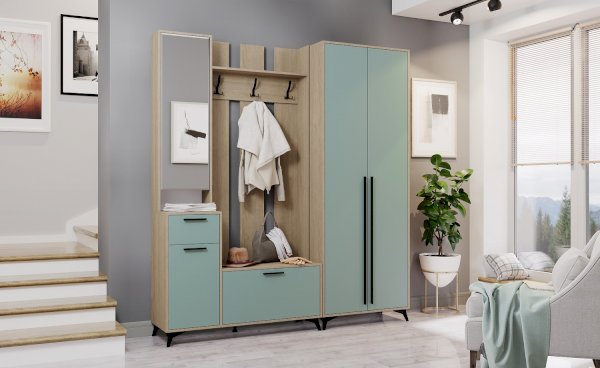 Цвет бежевый / голубой / дуб (сонома, молочный, феррара) / зеленый