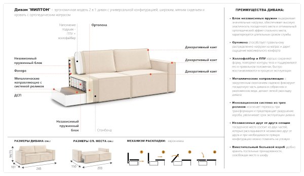 Диван Милтон (Империал) - за 60 776 руб. в Кашире. Купите на сайте kashira.onlinemarketmebeli.ru или по телефону 8(800)505-30-63 уже сегодня! Уточнить наличие, комплектацию, актуальную цену можно бесплатно у менеджера ежедневно. Закажите Диван Милтон (Империал) до конца акции! Доступна покупка в кредит, рассрочку. Доставим со склада или на заказ.