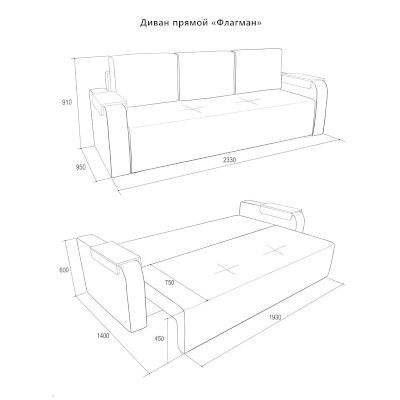 Габариты (ШхГхВ): 2330х950х910 мм