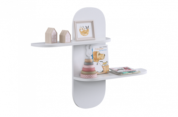 Навесная полка 2 Милана — практичное решение для хранения и декора, которое помогает эффективно использовать пространство стены и поддерживать порядок в детской комнате.