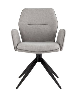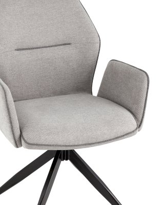 Мягкий стул со спинкой анатомической формы и удобными подлокотниками подарит комфорт и уют. Тканевая обивка оформлена декоративным кантом. Прочные ножки изготовлены из металла в черном цвете, поэтому обеспечивают хорошую устойчивость и делают стул оригинальным. Подпятники на ножках препятствуют скольжению и помогут защитить напольное покрытие от царапин. Изделие будет прекрасно смотреться как отдельный предмет мебели, так и в комплекте с обеденным или письменным столом.