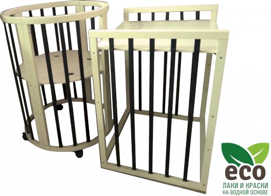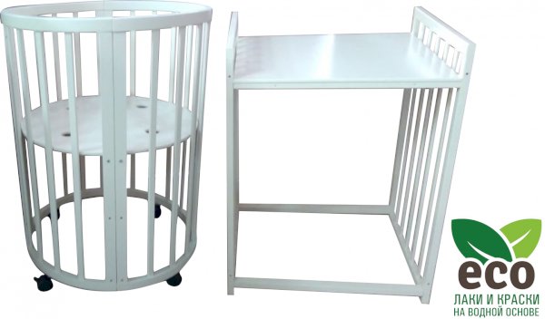 круглая кровать и пеленальный столик цвет венге/слоновая кость