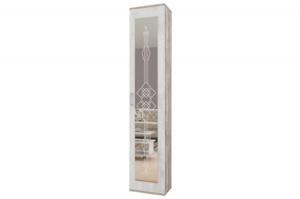 Пенал представлен в двух исполнениях – со вставками из эко кожи и с зеркалом (зеркало с пескоструйной обработкой). В центральной секции верхние створки устроены по принципу купе.