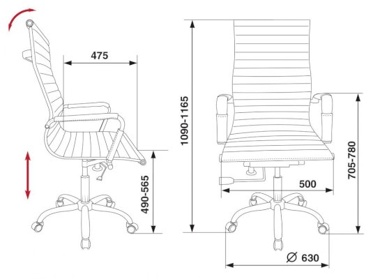 Высота с подлокотниками: 705-780