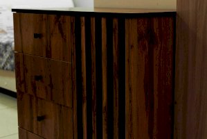 Четыре ящика расположены слева – один под другим. Внешне они кажутся небольшими, но на самом деле достаточно вместительны. В зависимости от тематики помещения в них можно разложить бумаги, документы, нижнее белье, полотенца. Справа, за распашной дверцей, два отделения. Сюда можно убрать постельное белье, подушки и одеяла – места для этого вполне достаточно. На верх комода можно поставить телевизор, а если повесить над ним зеркало и на столешнице расставить духи и косметику, он превратится в туалетный столик!