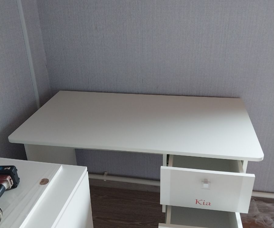 Письменный стол имеет просторную столешницу и два выдвижных ящика полного выдвижения. Оптимальный вариант для оформления удобного рабочего пространства.