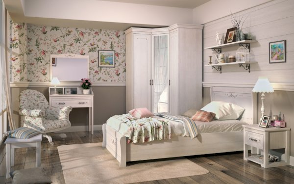 Спальня в стиле прованс Афродита — фаворит среди интерьеров у мечтательных и романтичных натур, этот стиль отлично подойдет как для квартиры, так и для загородного дома. Он создает очень нежный и даже слегка «воздушный» вид вашей комнаты, где в свойственной французам элегантной манере объединены красота и комфорт. Такая спальня просто создана для приятного отдыха и здорового сна. Она будет окутывать вас своей нежностью, теплом и дарить прекрасное настроение каждый день. Легкий оттенок старины и природная натуральность наполнят ваше сердце гармонией и позволят забыть о суете рабочих будней. Такой интерьер выбирают натуры с чистой и светлой душой, мечтательные и всегда слегка влюбленные.