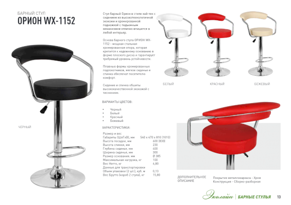 Барный стул Орион (Эколайн) - за 8 257 руб. в Кашире. Купите на сайте kashira.onlinemarketmebeli.ru или по телефону 8(800)505-30-63 уже сегодня! Уточнить наличие, комплектацию, актуальную цену можно бесплатно у менеджера ежедневно. Закажите Барный стул Орион (Эколайн) до конца акции! Доступна покупка в кредит, рассрочку. Доставим со склада или на заказ.
