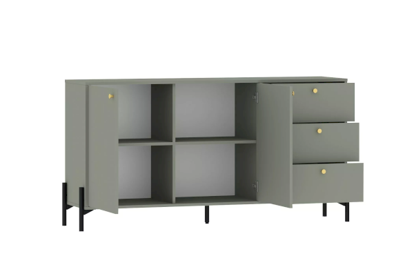 Тумба из коллекции Нуар цвета Хаки подойдет для тех, кто ищет необычный современный дизайн. Это слияние двух стилей – строгая геометрия линий придает сдержанности и минимализма, а изящные формы добавляют классического благородства. Круглые золотые ручки подчеркивают уникальность стиля коллекции.