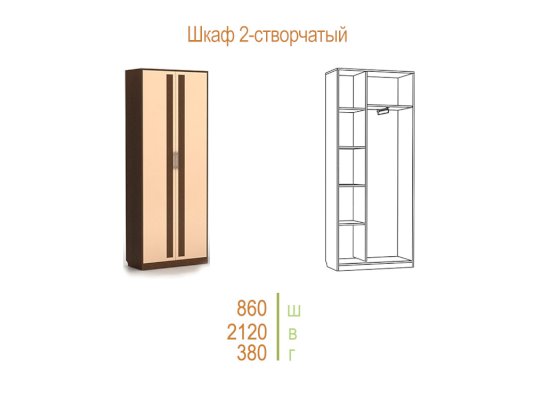 Новая модульная серия София выполняется в контрастных тонах, что придает яркость Вашей прихожей. Для людей, у которых есть потребность в хранении вещей именно в прихожей, — идеально подойдет вместительный 2-створчатый шкаф.