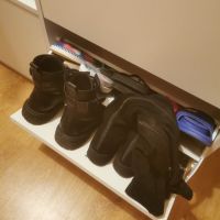Обувница хорошая, но хрупкая, при сборке нужно быть аккуратным. У меня в один отсек входит не больше 2 пар обуви. Смотрится аккуратно. В принципе, за такую цену вполне приличная обувница.