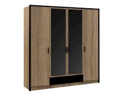 Классический распашной четырехдверный шкаф с дополнительным выдвижным ящиком выполнен в стиле минимализм: строгие черты, функциональность и простота. Контрастный профиль из МДФ 22мм по внешним углам со скругленными краями – максимально безопасное использование мебели. Кромка цвета венге подчеркивает древесную текстуру и рисунок светлого дуба сонома. Зеркала позволяют рассмотреть себя в полный рост, сделают комнату светлее и визуально просторнее. Шкаф легко впишется в обстановку любой комнаты.