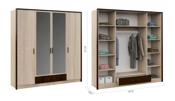 | Наполнение шкафа | выдвижные ящики / зеркало / штанга |