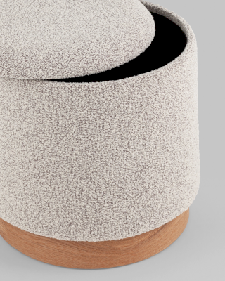 Лаконичный пуф в скандинавском стиле. Обивка выполнена из искусственного меха тедди - очень мягкий и приятный на ощупь материал. Прочный каркас из фанеры выдерживает на грузку до 150 кг. Основание из светлого массива дерева гармонично сочетается с белой обивкой. Пуф оснащен вместительным ящиком для хранения различный мелочей. Отличное функциональное дополнение для детской или спальни.