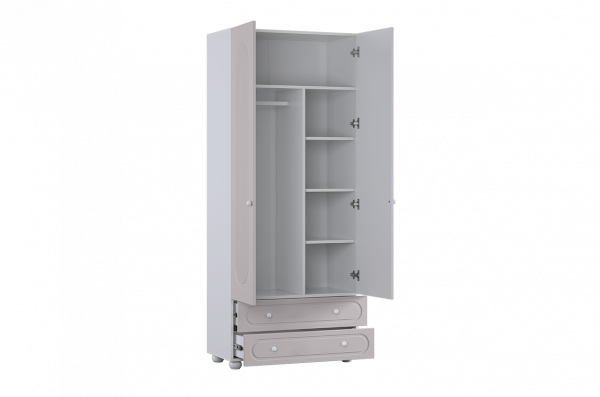 Милана Шкаф двухдверный — удобное и функциональное решение для хранения одежды и вещей в детской комнате. Продуманное внутреннее наполнение помогает поддерживать порядок и легко организовать пространство.