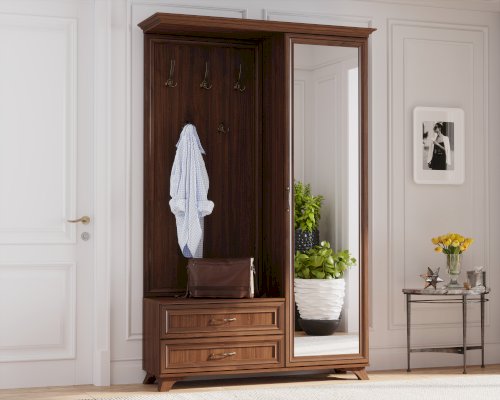 Наполнение: Шкаф с полками и выдвижной штангой + вешалка + два выдвижных ящика