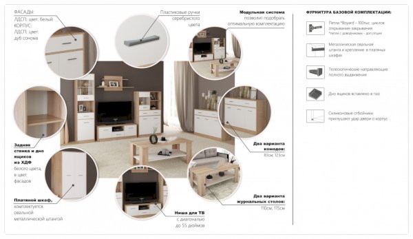 | Цвет | ДУБ СОНОМА / БЕЖЕВЫЙ / БЕЛЫЙ / СВЕТЛОЕ ДЕРЕВО |