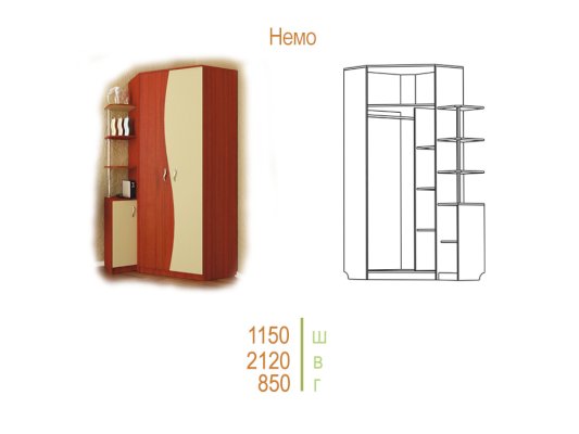 Вместительный угловой шкаф — эффективное использование пространства. Изогнутые линии фасадов придадут вашей комнате элегантность.
