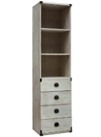 Шкаф разделен на 2 отделения: верхнее –открытое отделение с полками, нижнее – 4 выдвижных ящика на металлических роликовых направляющих